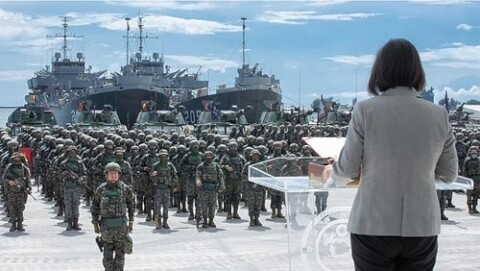 Tổng thống Đài Loan Thái Anh Văn tại một cuộc tập trận của Quân đội Đài Loan năm 2020. © Wikimedia