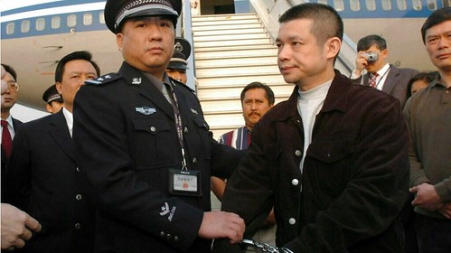 Trung Quốc triển khai một chiến dịch rộng lớn săn lùng tội phạm tham nhũng chạy trốn ra nước ngoài trên khắp thế giới. Ảnh Minh họa : một nghi phạm kinh tế được đưa từ Mỹ về Bắc Kinh hồi 16/04/ 2004. AP - Yuan Man