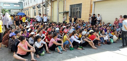 Công nhân đồng loạt nghỉ việc tập trung trước cổng Công ty trách nhiệm hữu hạn Ever Great International Việt Nam. Photo : vcci.com