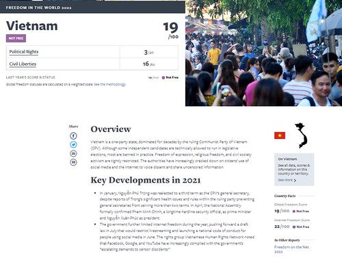 Theo phân tích trên trang web của Freedom House, Việt Nam bị xếp hạng thấp trong báo cáo này là vì :