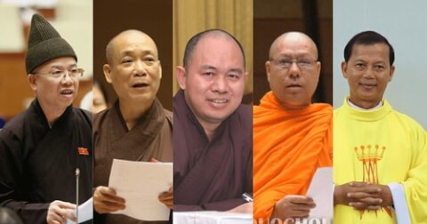 5 chức sắc tôn giáo trúng cử Đại biểu quốc hội khóa 15, từ trái qua : Hòa thượng Thích Thanh Quyết, Hòa thượng Thích Bảo Nghiêm, Thượng tọa Thích Đức Thiện, Hòa thượng Lý Minh Đức và Linh mục Nguyễn Văn Riễn. Ảnh : Quốc hội, Công giáo và dân tộc.