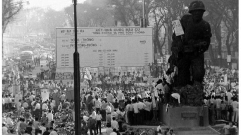 Kết quả bầu cử Tổng thống tại miền Nam Việt Nam năm 1967 (trước tòa nhà Quốc hội Việt Nam Cộng Hòa, Sài Gòn) - Ảnh minh họa