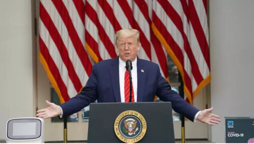 Theo ông Trump, Hoa Kỳ sẽ thoát khỏi dịch bệnh tốt hơn bất kỳ nước nào khác trên thế giới, vì các bệnh viện đầy ứ thiết bị y tế, hàng triệu xét nghiệm luôn sẵn sàng và chính quyền của ông đã làm "việc tuyệt vời. Nhưng chính ông vẫn không ngừng đổ lỗi cho chính quyền tiền nhiễm đã làm kho vật tư y tế của nước Mỹ trống rỗng để bây giờ ông và nước Mỹ "ra trận mà không có vũ khí đạn dược trong tay".