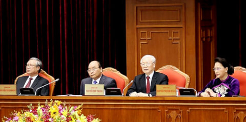 Từ trái qua : Thường trực Ban bí thư Trần Quốc Vượng, Thủ tướng Nguyễn Xuân Phúc, Tổng bí thư, Chủ tịch nước Nguyễn Phú Trọng, Chủ tịch quốc hội Nguyễn Thị Kim Ngân tại phiên khai mạc hội nghị Trung ương 10, khóa XII. Ảnh : TTX