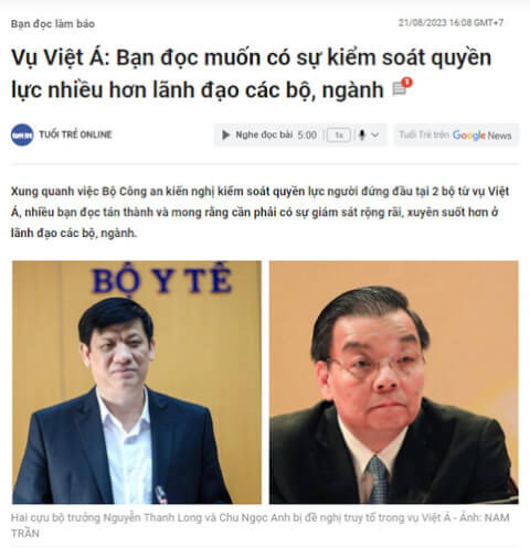 Ngày 21/8 vừa qua, báo Tuổi Trẻ có viết bài về vấn đề cần kiểm soát quyền lực nhiều hơn, nhân vụ án Việt Á. Đây là đề tài cũ được nhắc lại, nhưng cũng chẳng có cách nào để kiểm soát quyền lực, với thể chế chính trị Cộng sản hiện nay. Muốn kiểm soát quyền lực, thì phải phân quyền, phải tam quyền phân lập, không còn cách nào khác. Tuy nhiên, Đảng cộng sản Việt Nam luôn bác bỏ về sự đòi hỏi đa nguyên, đa đảng, tam quyền phân lập.