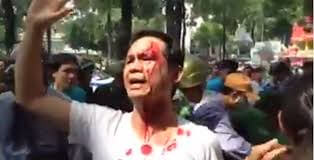 Nhà hoạt động Trần Bang bị đánh đổ máu khi tham gia biểu tình phản đối Tập Cận Bình ngày 5/11/2015 - Ảnh tác giả cung cấp