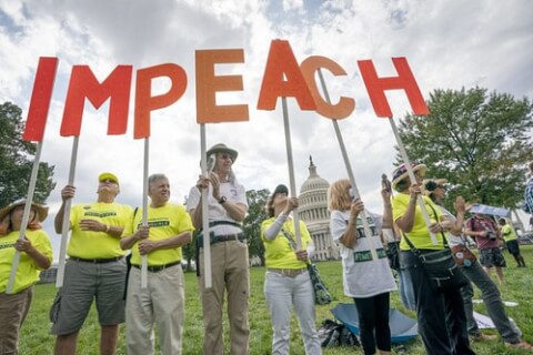 Các nhà hoạt động muốn luận tội Tổng thống Donald Trump. (Hình : AP Photo/J. Scott Applewhite)