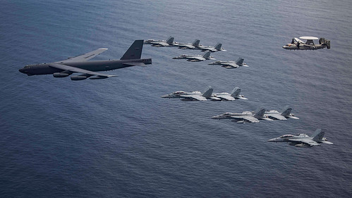 Máy bay từ Lực lượng Tác chiến Tàu sân bay Nimitz và Máy bay ném bom B-52 từ Căn cứ Không quân Barksdale, Louisiana, tiến hành các hoạt động kết hợp chung trên không nhằm hỗ trợ cho một khu vực Ấn Độ Dương-Thái Bình Dương Tự do và Rộng mở (FOIP). Các nhóm tác chiến tàu sân bay USS Nimitz và tàu sân bay USS Ronald Reagan đã tiến hành các hoạt động gồm hai tàu sân bay ở Biển Đông trong vai trò là Lực lượng Tác chiến Tàu sân bay Nimitz.