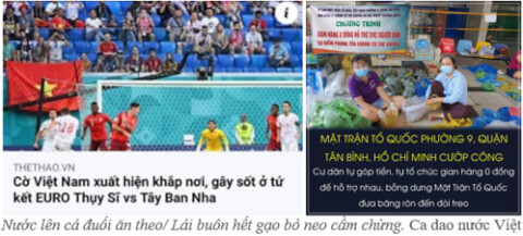 - FB Phạm Minh Vũ : "Trong mùa giải Euro năm nay, nhiều người thấy trận bóng giữa Tây Ban Nha và Thụy Sĩ trên nhiều góc khán đài có lá cờ đỏ sao vàng được căng ra… Hành động căng cờ đỏ Việt Nam lên, thật hành động quá phản cảm. Hình ảnh lá cờ này thật sự không nên đem ra căng giữa lúc giải Châu Âu đang đá. Nếu có hình ảnh nào mà làm nhục Việt Nam khủng khiếp nhất, thì chính là hình ảnh cờ đỏ được treo trên các trận bóng đá ở Châu Âu".