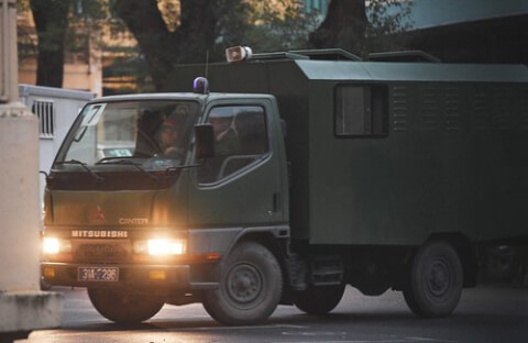 Xe chở bị cáo ra tòa ở Hà Nội. Ảnh minh họa. AFP