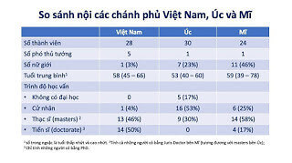 Nhân dịp thấy một danh sách thành viên Nội các mới, tôi đếm lại và so sánh với các nước China, Mĩ và Úc. Kết quả tóm lược trong bảng dưới đây cho thấy vài xu hướng thú vị.