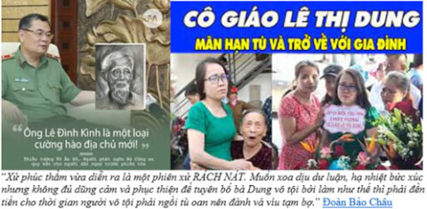 * Nguyễn Thông : "Vụ xử sơ thẩm và phúc thẩm đối với cô Dung chả khác gì trò đùa, với đủ trò mưu mẹo dấm dúi và trắng trợn. Pháp luật trong tay kẻ tiểu nhân cai trị chỉ là trò đùa dai của vở diễn hài nhân danh công lý".