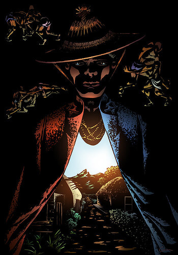 Ngày nọ một tay bịp bợm trong làng quyết định thử thách tình bạn của họ. Y tự may cho mình chiếc áo hai màu mà chia đôi từ trên xuống dưới nửa bên phải màu đỏ nửa bên trái màu xanh. Y mặc áo mới này đi dọc theo đường mòn hẹp giữa hai nhà. Đôi bạn lúc ấy mỗi người đang mải mê làm việc đối diện nhau ở trên đồng mình. Y vừa đi giữa họ vừa tạo ra tiếng ồn đủ để khiến mỗi người bạn cùng một lúc ngước lên nhìn thấy y.