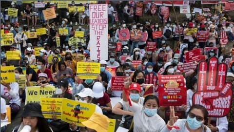 Hàng trăm ngàn người Miến đã xuống đườngbiểu tình liên tiếp trong những ngày qua để phản đối cuộc đảo chánh của Tatmadaw. Các tổ chức nhân quyền nhưHuman Rights Watch và Amnesty International cho biết, cảnh sát đã bắn vào người biểu tình, và bắt hơn 300 người cho đến hôm nay.