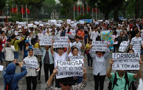 Hình minh họa. Người biểu tình phản đối công ty Formosa xả thải gây ô nhiễm môi trường. Hà Nội ngày 1/5/2016 - AFP