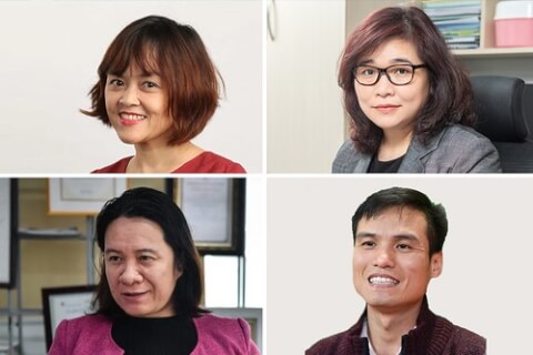 Bốn nhà hoạt động môi trường Hoàng Thị Minh Hồng (ảnh trên, trái), Ngô Thị Tố Nhiên (trên, phải), Nguỵ Thị Khanh (dưới, trái) và Đặng Đình Bách – RFA editted