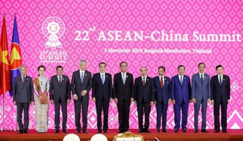 Lãnh đạo các nước ASEAN và Trung Quốc chụp hình chung trong Thượng đỉnh ASEAN Trung Quốc ở Bangkok, Thái Lan hôm 3/11/2019 Reuters