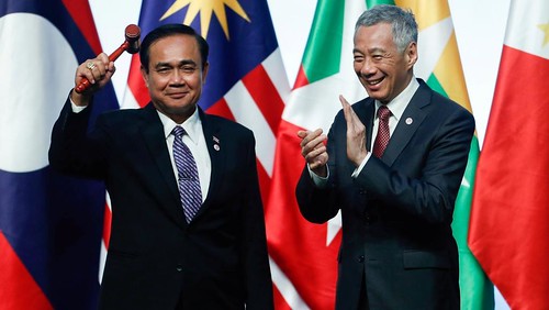 Ảnh tư liệu : Tại Thượng Đỉnh ASEAN lần thứ 33 ở Singapore, thủ tướng Thái Lan (t) nhận chức chủ tịch luân phiên ASEAN 2019 từ tay đồng nhiệm Singapore ngày 15/11/2018. Reuters