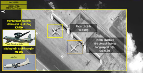 Trung Quốc đã xây dựng và lắp đặt các thiết bị quân sự của Trung Quốc triển khai trái phép ở đá Chữ Thập của Việt Nam. Ảnh : ISI.