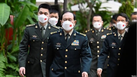 Phái đoàn Trung Quốc, do Bộ trưởng Ngụy Phượng Hòa dẫn đầu, chuẩn bị cuộc gặp song phương bên lề Shangri-La với đồng nhiệm Mỹ, Lloyd Austin, 10 tháng Sáu.