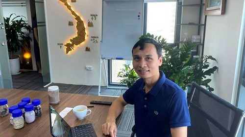 Ông Lưu Anh Tuấn, Chủ tịch công ty khai thác mỏ VTRE tại văn phòng Hà Nội với các mẫu oxit đất hiếm