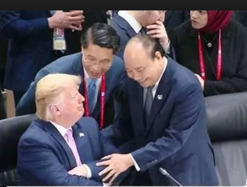 Hình ảnh ông Nguyễn Xuân Phúc - Thủ tướng Việt Nam, đến chào ông Donald J. Trump - Tổng thống Mỹ, hôm 28 tháng 6, làm nhiều người… rã rời.