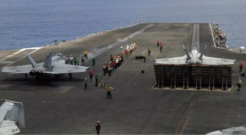Hai cụm tàu sân bay tấn công USS Ronald Reagan và USS Nimitz đang tiến hành tại Biển Đông các cuộc tập trận lớn nhất từ nhiều năm qua, khi Bắc Kinh vừa kết thúc đợt thao dượt quân sự ở Hoàng Sa, quần đảo mà Bắc Kinh chiếm của Việt Nam từ năm 1974, hành động mà Washington chưa bao giờ chấp nhận. Tham gia tập trận có oanh tạc cơ chiến lược Stratofortress B-52. Qua cuộc tập trận hải không quân, Hoa Kỳ cho thấy họ không muốn để Trung Quốc "một mình một chợ" ở Biển Đông.