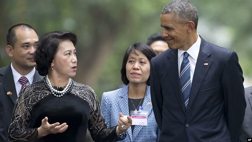 Bà Ngân tiếp ông Obama hồi tháng Năm, 2016 tại Hà Nội.