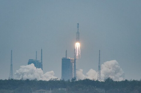 Tên lửa Trường Chinh 8 Trung Quốc cất cánh từ Trung tâm Phóng Vũ trụ Văn Xương ở tỉnh Hải Nam vào ngày 22 tháng 12 năm 2020. AFP