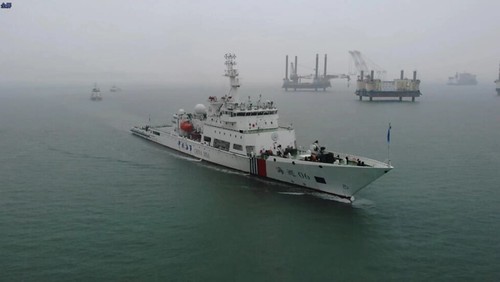 Tàu hải cảnh Trung Quốc hoạt động tại eo biển Đài Loan, ngoài khơi tỉnh Phúc Kiến, Trung Quốc. Ảnh chụp ngày 06/04/2023 via Reuters - Maritime Safety Administration