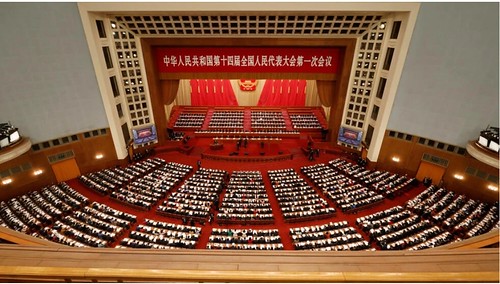 Phiên khai mạc Quốc hội Trung Quốc (có tên gọi chính thức là "Đại hội Đại biểu Nhân dân Toàn quốc"), tại Đại lễ đường Nhân dân ở Bắc Kinh, ngày 05/03/2023. Reuters – Thomas Peter