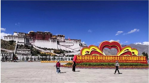 Trước Cung Potala, trung tâm của văn hóa Tây Tạng. Ảnh chụp ngày 29/09/2020, trước quốc khánh Trung Quốc. AFP - STR