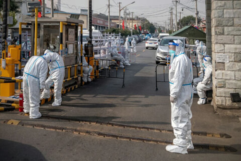 Nhân viên y tế mặc đồ bảo hộ kiểm tra một khu vực của Bắc Kinh dưới lệnh phong tỏa. (Tin tức Bloomberg)
