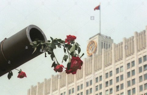 Điểm nổi bật và đặc biệt nhất của cuộc đảo chính bất thành (do các lãnh đạo bảo thủ Đảng cộng sản Liên Xô phát động) và sự sụp đổ của Liên bang Xô Viết sau đó là sự vắng mặt của đối lập dân chủ Nga. Từ những người đảo chính, Mikhail Gorbachev đến Boris Yeltsin đều là đảng viên cao cấp của đảng cộng sản Liên Xô.
