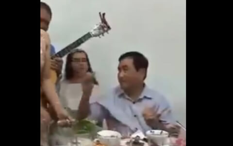 Người được cho là Đại tá T.Đ.V - cựu Giám đốc Công an Quảng Trị tham gia vào bữa nhậu phản cảm xôn xao mạng xã hội. VTC/ ảnh cắt từ video clip