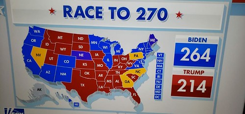 Sau khi giành được thêm hai bang Wisconsin và Michigan (sau Arizona) từ tay ứng cử viên Cộng hòa Donald Trump, ông Joe Biden kể từ nay nắm trong tay lá phiếu của 264 đại cử tri, tức là chỉ cần 6 phiếu nữa là đủ mức tối thiểu 270 đại cử tri để đắc cử tổng thống thứ 46 của Hợp chủng quốc Hoa Kỳ.