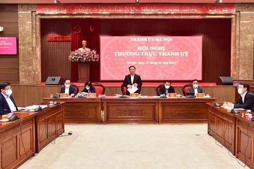 Bí thư Thành ủy Hà Nội Vương Đình Huệ phát biểu tại Hội nghị 25/2/2021. dangcongsan.vn