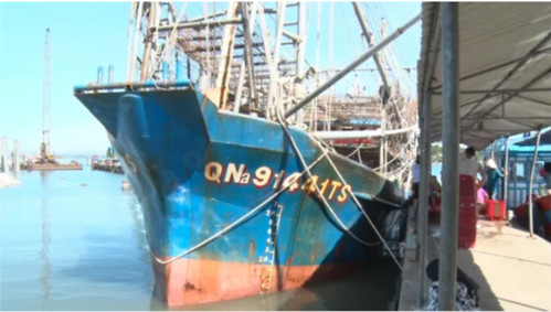 Tàu ngư dân Quảng Nam QNa 91441 cập cảng Kỳ Hà sau khi bị cướp hải sản đánh bắt. Hình minh họa.