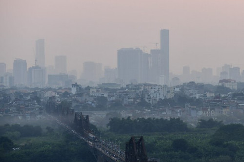 Một lớp sương mù dày đặc bao phủ đường chân trời Hà Nội - AFP