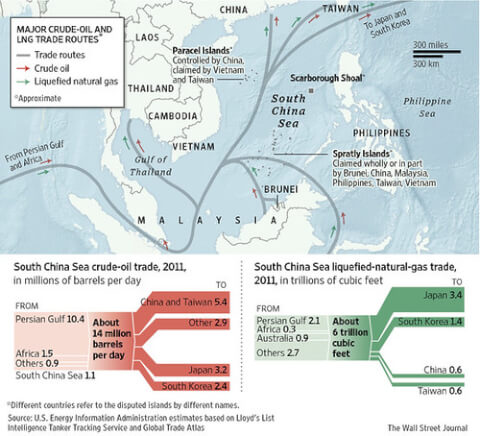 Biển Đông, nơi có nhiều tuyến đường biển quan trọng, đã là một điểm nóng tranh chấp trong nhiều năm, với một số quốc gia tuyên bố chủ quyền đối với các quần đảo và bãi đá, cũng như quyền tiếp cận các tài nguyên ngoài khơi trên vùng biển này. Ảnh minh họa