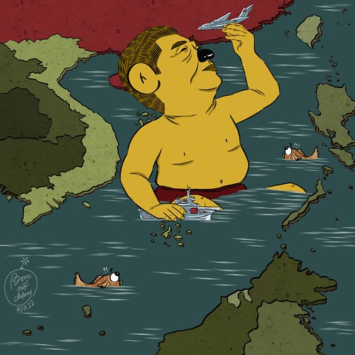 Tập Cận Bình tắm trong ao nhà Biển Đông - Tranh biếm họa - Bom Nổ Chậm/RFA