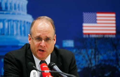 Đặc phái viên của Tổng thống Mỹ về kiểm soát vũ khí Marshal Billingslea trả lời câu hỏi của báo chí ở Vienna, Áo hôm 23/6/2020 – Reuters