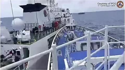 Tàu hải cảnh Trung Quốc (bên trái) va chạm với tàu BRP Teresa Magbanua của Philippines gần bãi cạn Sa Bin ngày 31/08/2024. AFP - Handout