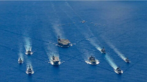 Tàu sân bay Mỹ USS Ronald Reagan cùng các chiến hạm Nhật Bản và Úc cùng diễn tập trên Biển Philippines ngày 21/07/2020. Commander, Task Force 70 / Carri - Petty Officer 2nd Class Codie So