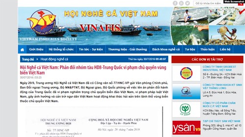 Hội nghề cá phản đối hành động vi phạm vùng biển Việt Nam của tàu Trung Quốc (RFA, 30/07/2019)