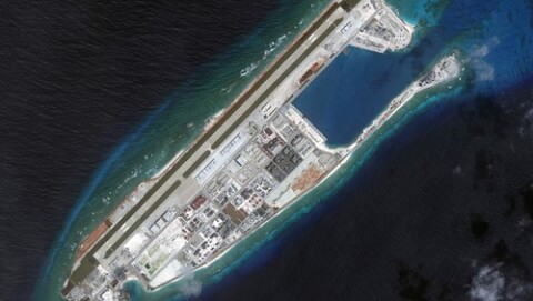 Đá Chữ Thập, một trong những đảo nhân tạo Trung Quốc xây ở Trường Sa. Ảnh chụp từ vệ tinh ngày 09/03/2017. Reuters