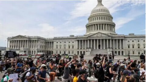Biểu tình ôn hòa đòi công lý sau cái chết của người da đen George Floyd do bạo lực cảnh sát tại Minneapolis, cạnh nhà Quốc Hội Mỹ, Washington, ngày 03/06/2020. Reuters - Jonathan Ernst