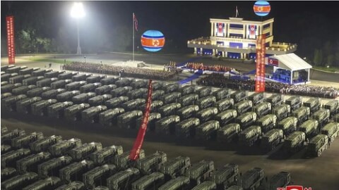 Các bức ảnh do KCNA công bố cho thấy các loạt bệ phóng được xếp hàng bên cạnh những biểu ngữ màu đỏ kêu gọi chiến thắng, được đặt dưới ánh đèn pha tại sự kiện được tổ chức vào ban đêm và có sự tham dự của ông Kim.
