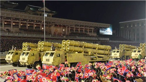 Bình Nhưỡng phô trương tên lửa mới trong lễ diễn binh mừng Đại hội 8 đảng Lao Động Triều Tiên ngày 14/01/2021 via Reuters - KCNA