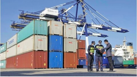 Hàng hóa xuất nhập khẩu trên cảng Yên Đài (Yantai), tỉnh Sơn Đông phía đông Trung Quốc ngày 12/10/2021. AP